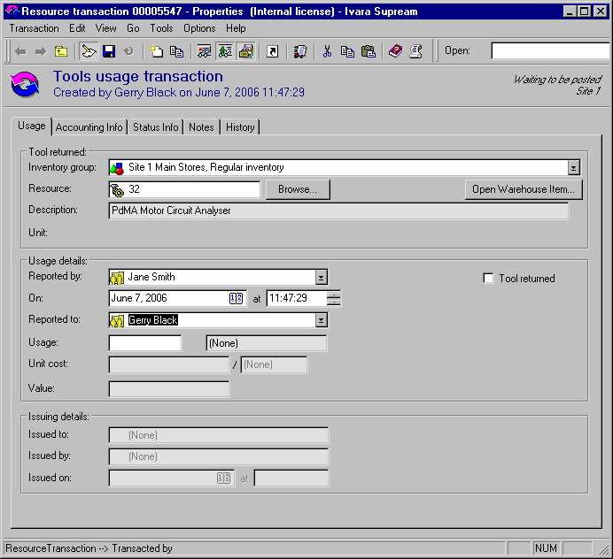 To Report Tool Usage Activity