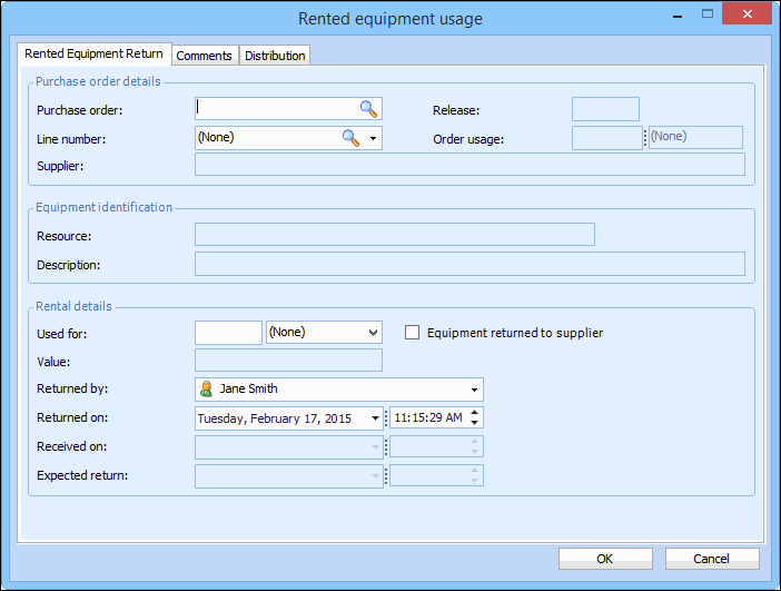 6. Click OK to save your changes and close the Rented Equipment Usage dialog.