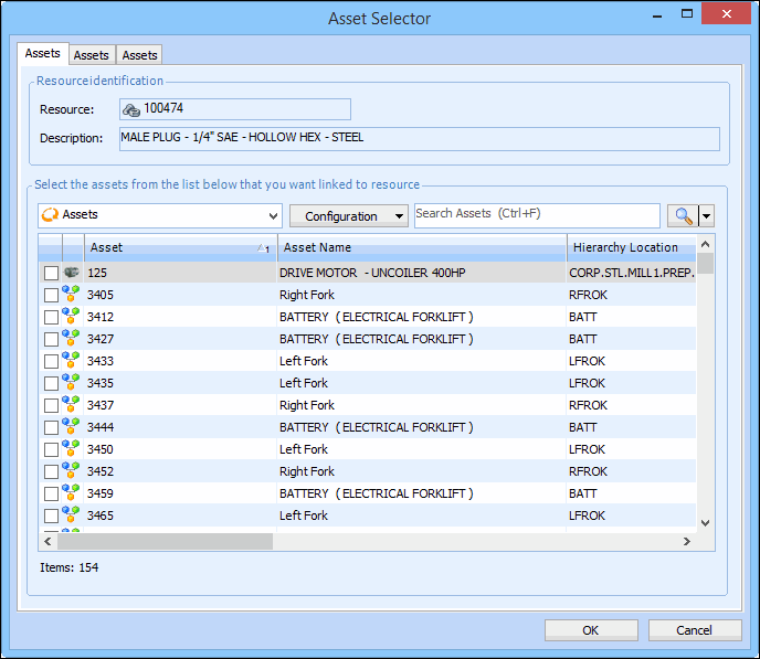 4. Select the Assets configuration. A list of all assets linked to this resource appears.