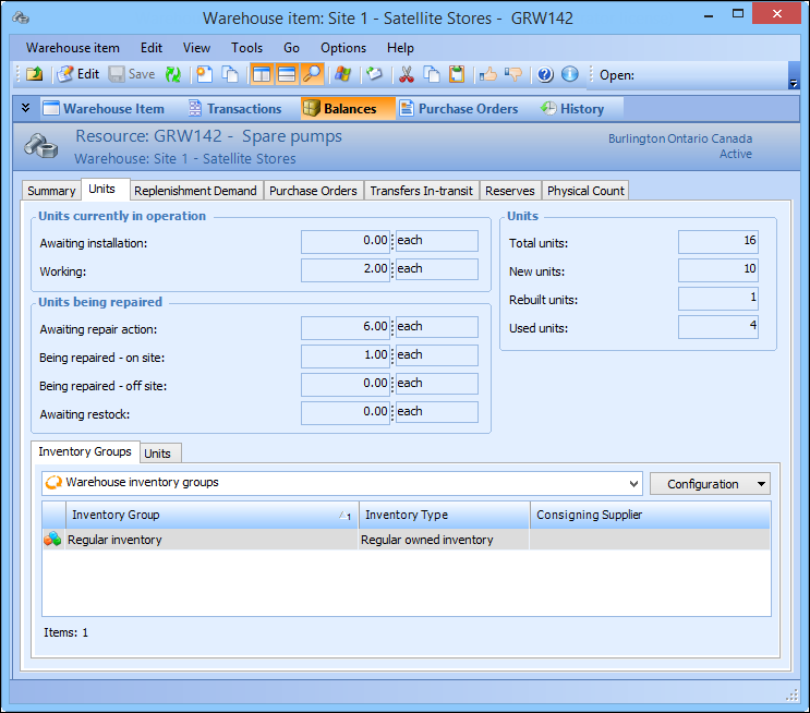 7. Select the Units tab to view units that are currently in operation, being repaired, and total units overall. For example:
