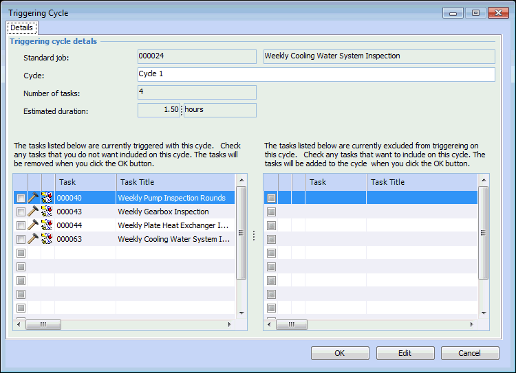 10. Tip: You can also assign individual standard job tasks to one or more cycles. In the Standard Job window, Properties view, select the Tasks tab. Double-click a task to open the Standard Job Task dialog, where you can specify which cycles the task is to be performed on.