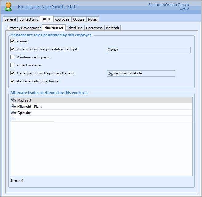 Tasks Adding Troubleshooters Troubleshooters are maintenance tradespeople specifically assigned to handle minor problems that occur everyday. These tasks are usually not planned and, therefore, work orders are not created for them ahead of time. The troubleshooter responds when the problem occurs and performs the necessary repairs to get the equipment back in service as quickly as possible. APM provides a way for troubleshooters to record their time spent on troubleshooting tasks without having to create a work order for each task. Only employees with the troubleshooter role selected on their employee record can have their time recorded against a troubleshooter timesheet. To Add a Troubleshooter 1. Select the site's Personnel view. 2. Find the name of the employee who will be a troubleshooter, and double-click it. The Employee window appears. 3. On the Properties view, select the Roles tab and then the Maintenance tab. 4. Select the Maintenance troubleshooter box. 5. Save and close the Employee window.