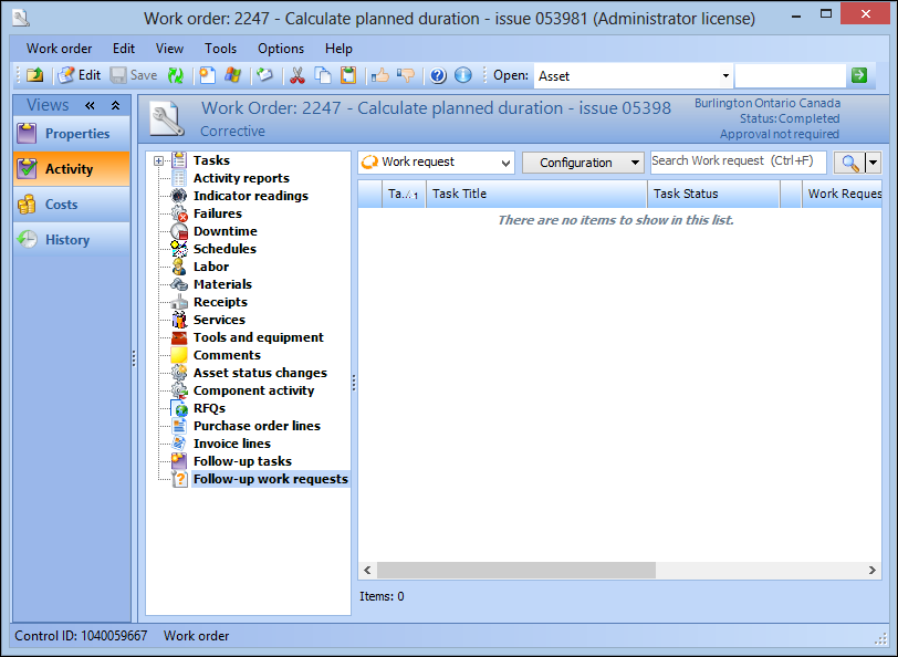 5. Select the Activity view, then Follow-up work requests. If a follow-up work request was created, it is listed on this tab.