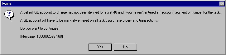 • Click Yes to continue, and enter the account numbers manually for each work order transaction.Locating Account Segments Used in Transactions