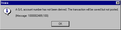 “A GL account number has not been derived. The transaction will be saved but not posted”