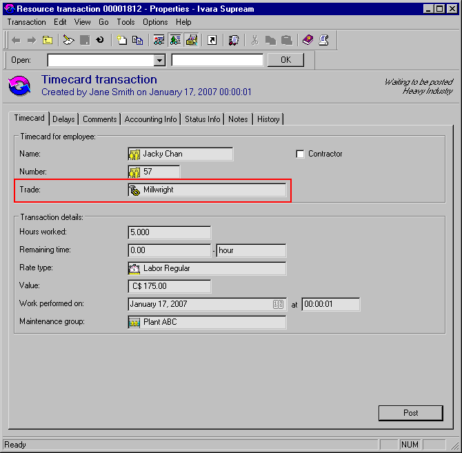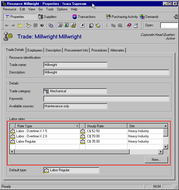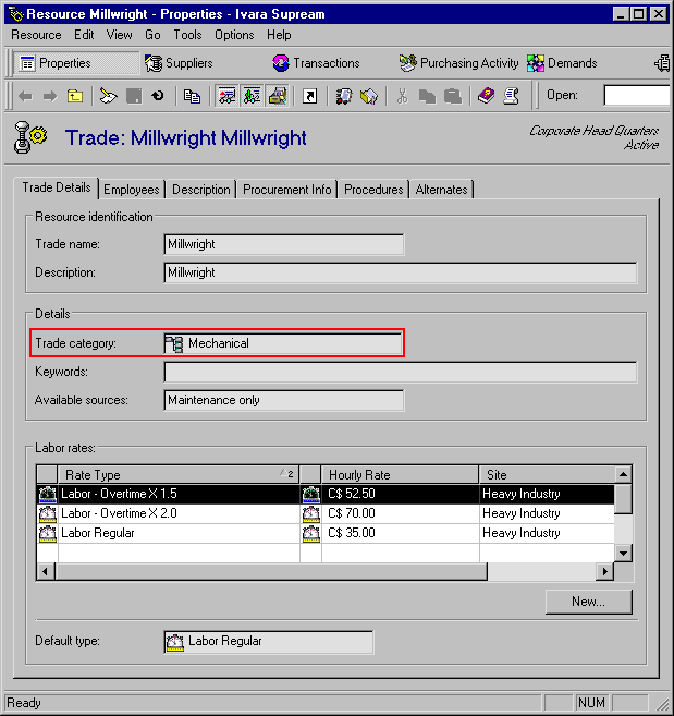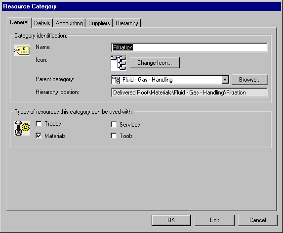 2. Double-click the icon in the Trade category box. The Resource Category dialog appears.