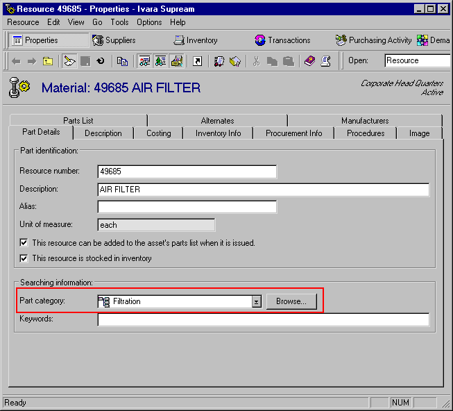 2. Double-click the icon in the Part category box. The Resource Category dialog appears.