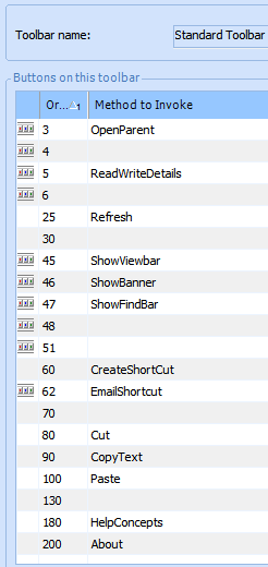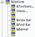 Concepts Tasks Reference Standard Menus and Toolbars Here are the items included on standard APM primary locking object classes: Standard object menu (first menu): Edit menu: View menu: | Options menu: Help menu: Standard Toolbar Elements Here are the items included on standard APM toolbars: Note: The blank elements represent toolbar separators. The standard toolbar UI looks like this: