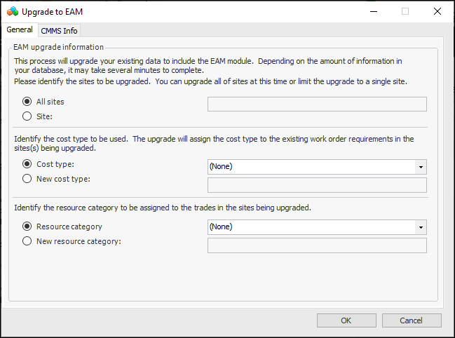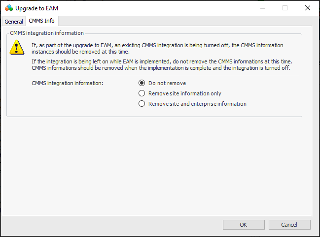 14. If you selected All sites on the General tab, you can remove CMMS information from the enterprise as well as from all sites. Otherwise, select Remove site information only.