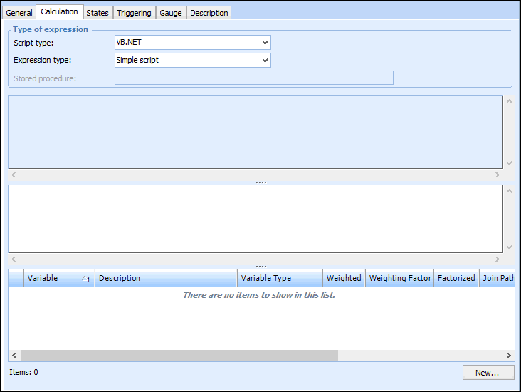 4. Click New to define the variables for the calculation using the argument names defined in your function. You can create four types of calculation variables: Calculation, filter, global variable, or join path.