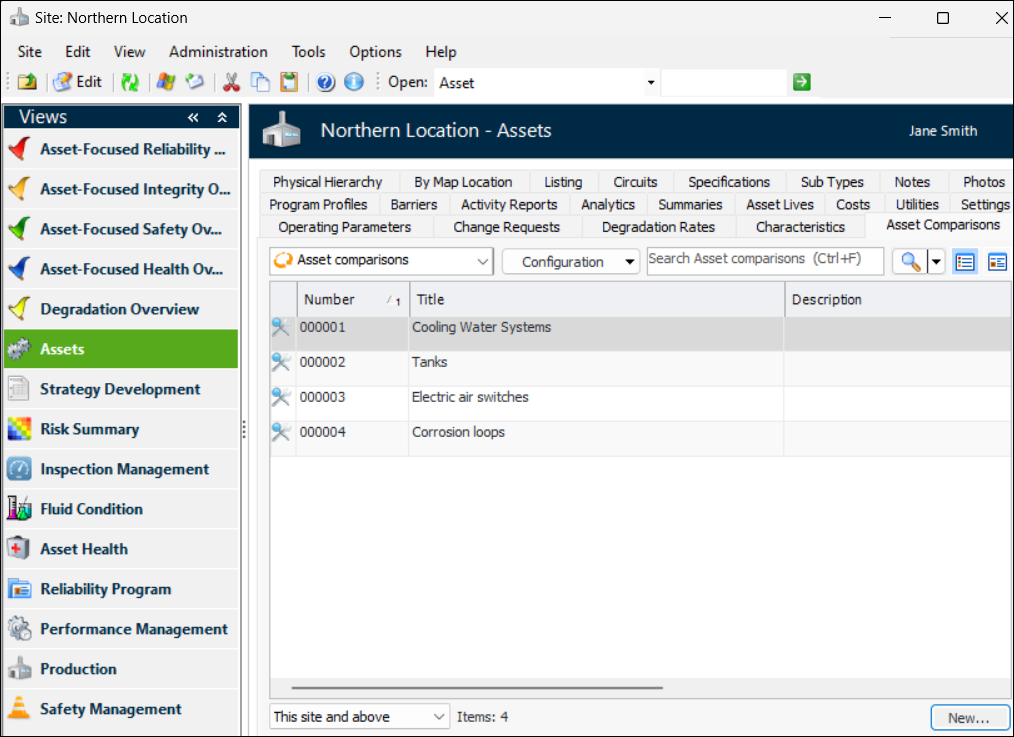 Note: Asset comparisons are a “generally available” product feature. You must first enable feature 136 to use the functionality in APM. In the Enterprise window, select the Features view and the Enabled Features tab. Click Browse, select “Asset comparison” and click OK. If APM is running as a smart client, click Refresh Enabled Features on the server. Then restart the client to use the functionality.To Set up a Comparison