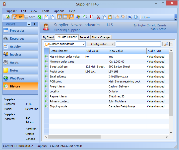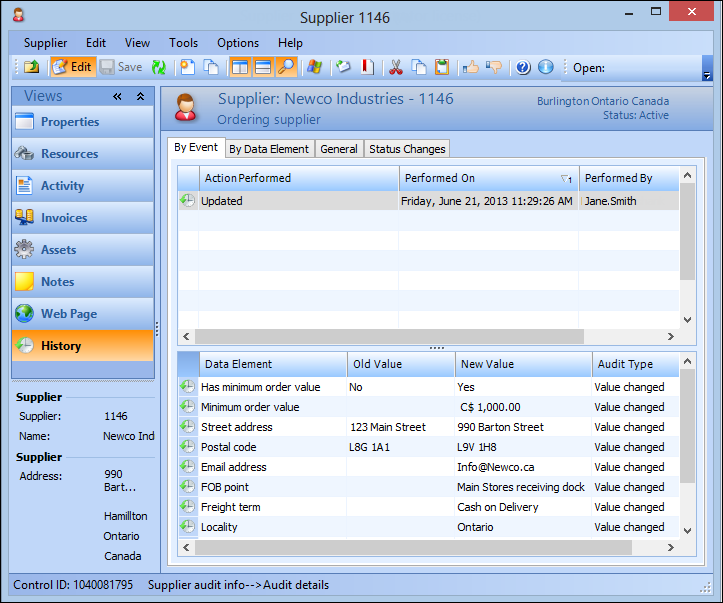 4. Select the By Data Element tab to view audit details for each data element that was altered.