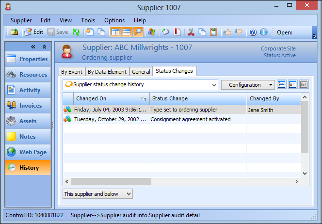Viewing a Supplier’s Status Change History