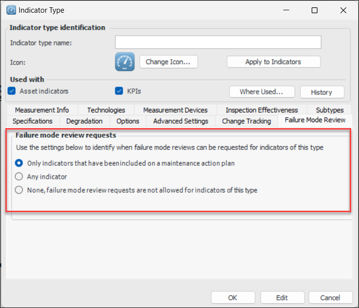 Request Failure Mode Review for Any Indicator