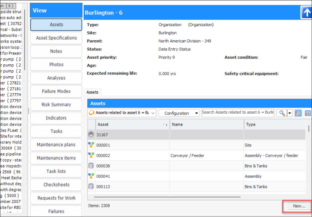 You can now add a new object from several of the views in an overview. Look for the New button in lower right corner:Asset Risk Summaries