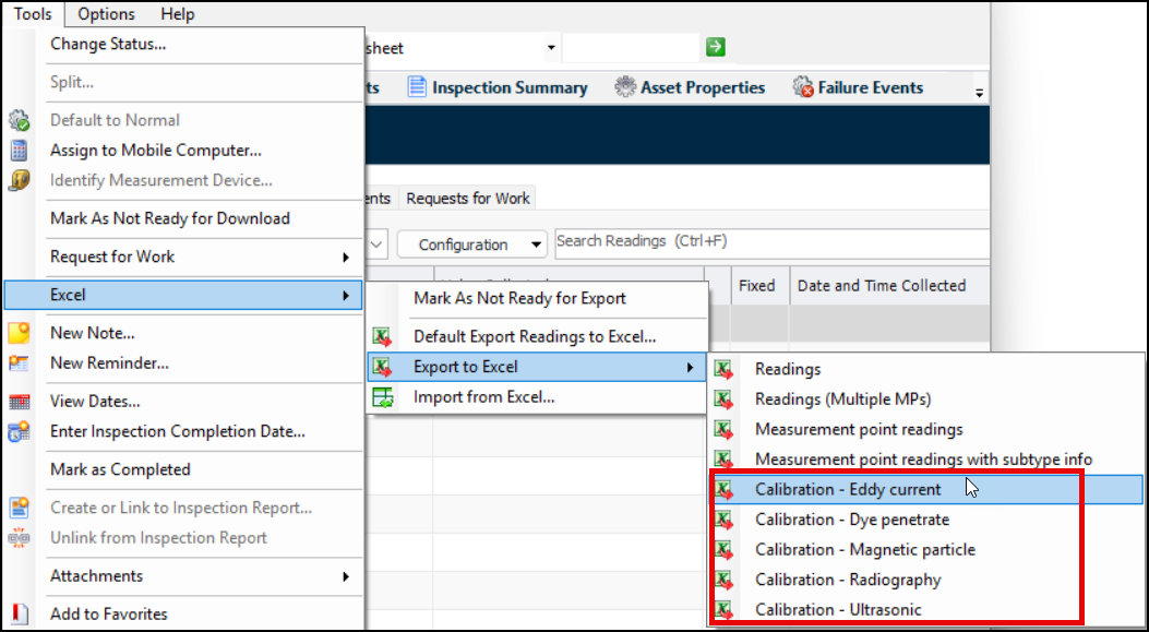 Export Checksheet Subtype Calibration Readings to Excel®