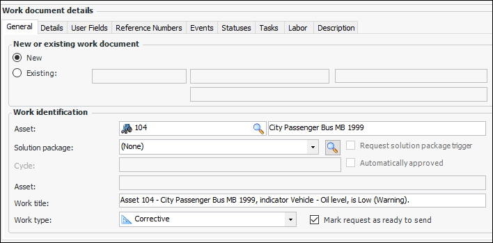 If Mark request as ready to send is not selected, the request must be submitted manually.The default value of Mark request as ready to send is controlled by the work type’s site settings. In the Work Type and Site Settings dialog, the General tab now provides options for two scenarios: when a solution package is selected for the request and when a solution package has not been selected. For both scenarios, the choice is between automatically and manually marking the request as ready to send.Requests for Work – Control Event Creation