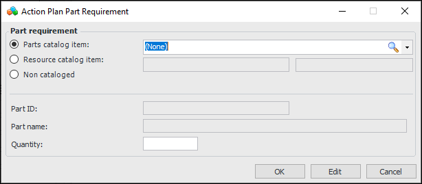 In the Maintenance Action Plan window, Implementation view, select the Critical Parts tab and click New. The Action Plan Part Requirement dialog appears:In the Strategy Development Analysis window, you can select the Analysis Summary view, Critical Parts tab to see a list of the parts for all of the action plans in the analysis.You can maintain a parts catalog in the Site window, Strategy Development view and tab, Critical Parts tab. For example:Note: To use this functionality in APM, you must enable feature 42. In the Enterprise window, select the Customization Center view and the Enabled Features tab. Click Browse, select “Support for critical parts identification on a maintenance action plan”, and click OK. If APM is running as a smart client, click Refresh Enabled Features on the server. Then restart the client to use the functionality.Table Configurations