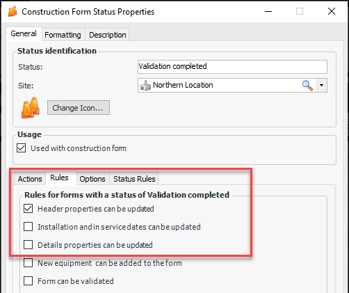 See Setting up APM Outbound Events for information about enabling outbound events at the site level, configuring the server instance, setting up the service provider, and setting event handler options. The topic also explains how to set up custom interface packages and event handlers.For information about creating a topic and connection component so that AWEIS can receive APM events and convert them to SyncEvents, see “Setting up APM Outbound Events” in AssetWise Interoperability Setup Guide.Construction Management – Form Status