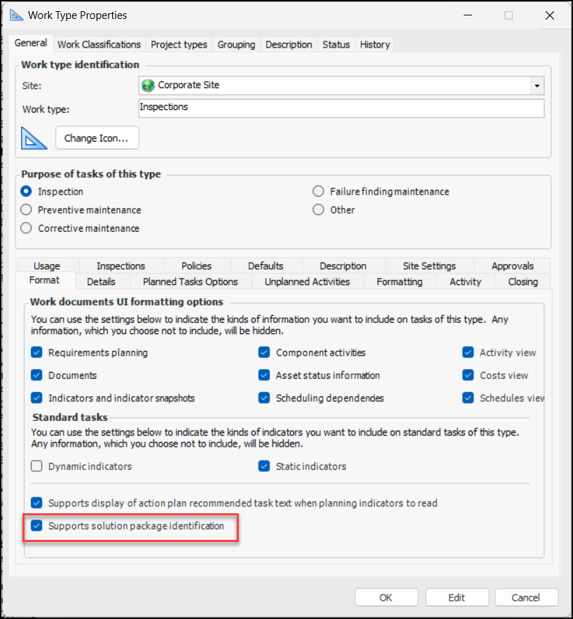 When it is supported, the Solution Packages tab appears in the Standard Task window,