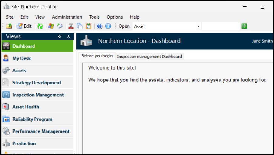 When users log into APM and open the Site window, their Dashboard,