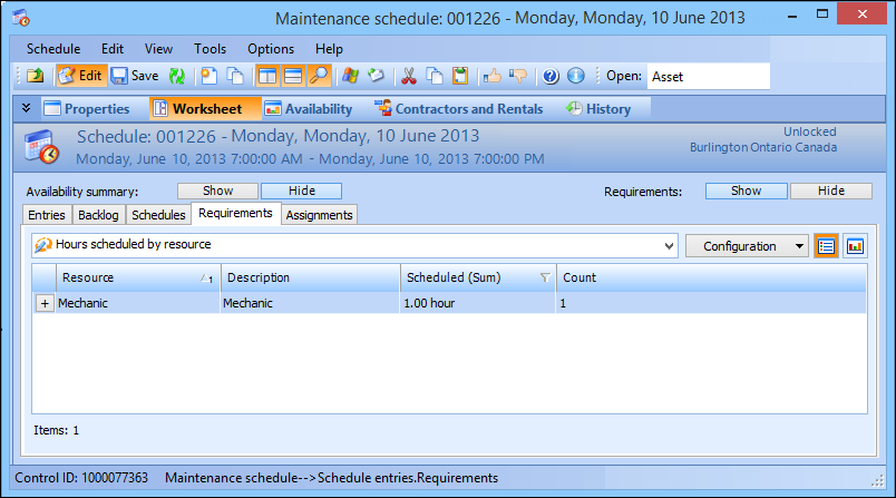 You can view the hours scheduled for all resources (catalog and non-catalog) on the schedule’s Worksheet view, Requirements tab, Hours scheduled by resource configuration.Expiring Schedules