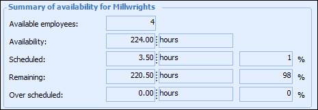 • Over-scheduled: The number of hours that are scheduled that exceed the availability.Percentage Availability During a Shift