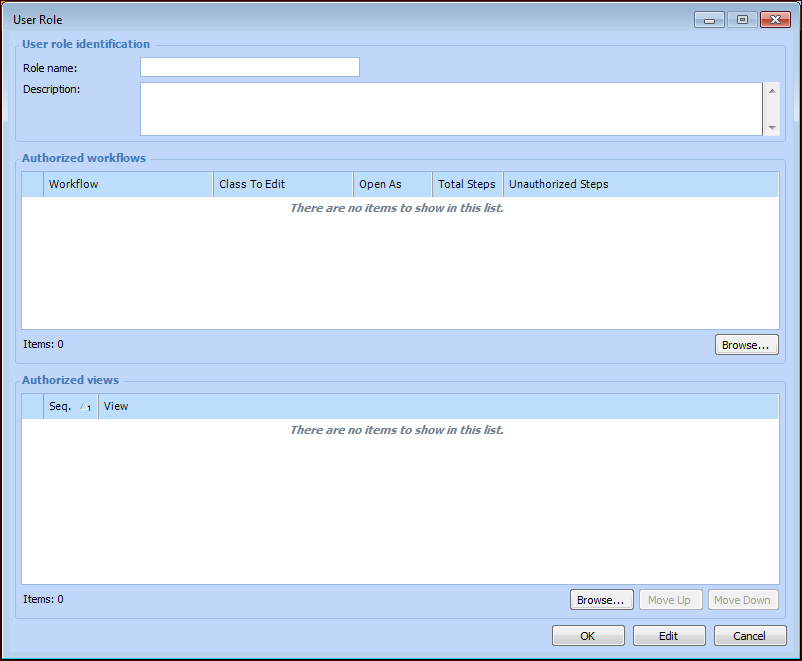 3. Click New. The User Role dialog appears: