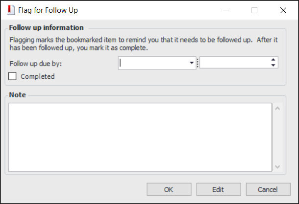 • In a My Favorites table, select the favorite. In the Favorite list, click Flag for Follow Up. The Flag for Follow Up dialog appears.