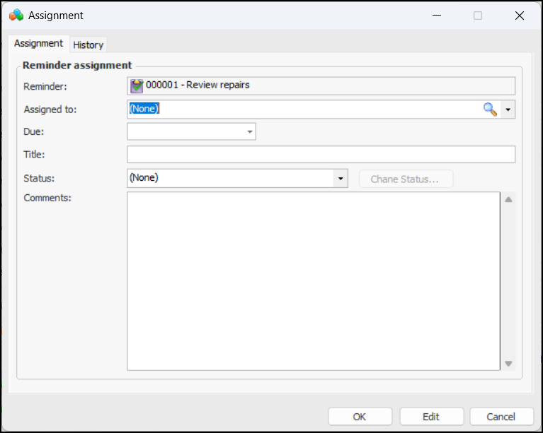 11. Click OK to save the reminder and close the window.To Add an Assignment to a Reminder