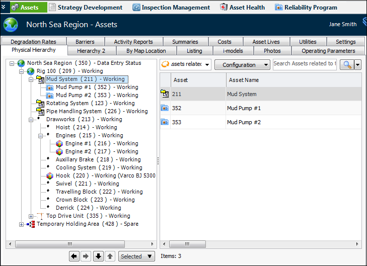 • Right-click an object in the tree or click the object and then the Selected list. Then click an option in the list: