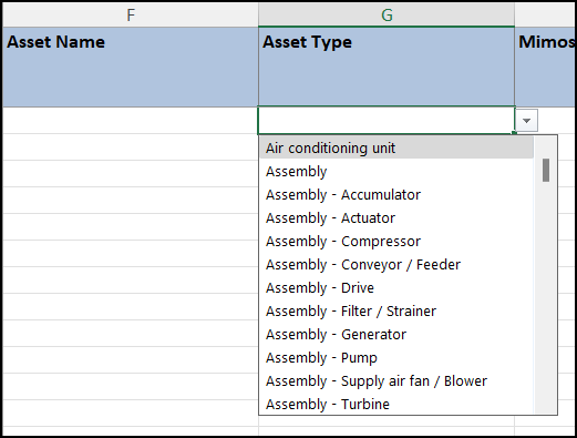 In the Excel® workbook, place the cursor in the row below the column heading and click the drop-down list arrow: