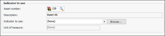 • Beside the Asset number box, click the browse icon. The Asset Selector dialog appears. Select the asset that owns the indicator and click OKSelect an indicator from the Indicator to use list, which contains the selected asset’s 4D indicators