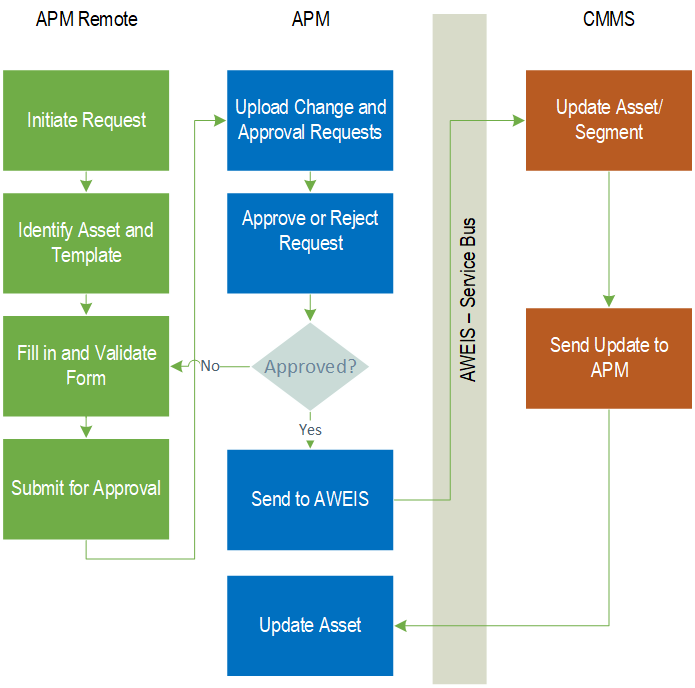 See Setting up APM Outbound Events for information about enabling outbound events at the site level, configuring the server instance, setting up the service provider, and setting event handler options. The topic also explains how to set up custom interface packages and event handlers.For information about creating a topic and connection component so that AWEIS can receive APM events and convert them to SyncEvents, see “Setting up APM Outbound Events” in AssetWise Interoperability Setup Guide.Construction Management – Form Status