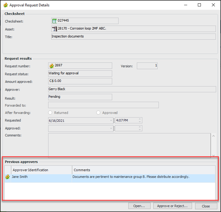 When the review process is active for a properties change request, all levels of review (up to three) are displayed in the Review view at the same time. Here is an example with three levels:Asset Status Available on Properties Change Requests