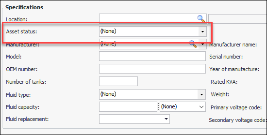 For distribution network assets, the New Properties Change Request window, Change Request tab now includes the Asset status selection list. For example:You can limit the asset statuses available in the list in the asset change request template. Select the new Asset Statuses tab, click Limit available asset statuses, and select the statuses to use.Create Property Change Requests from Construction Form