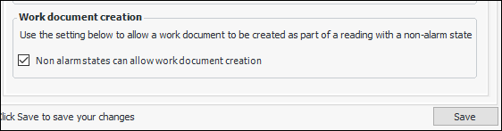 4. At the bottom of the tab, select Non alarm states can allow work document creation. For example:
