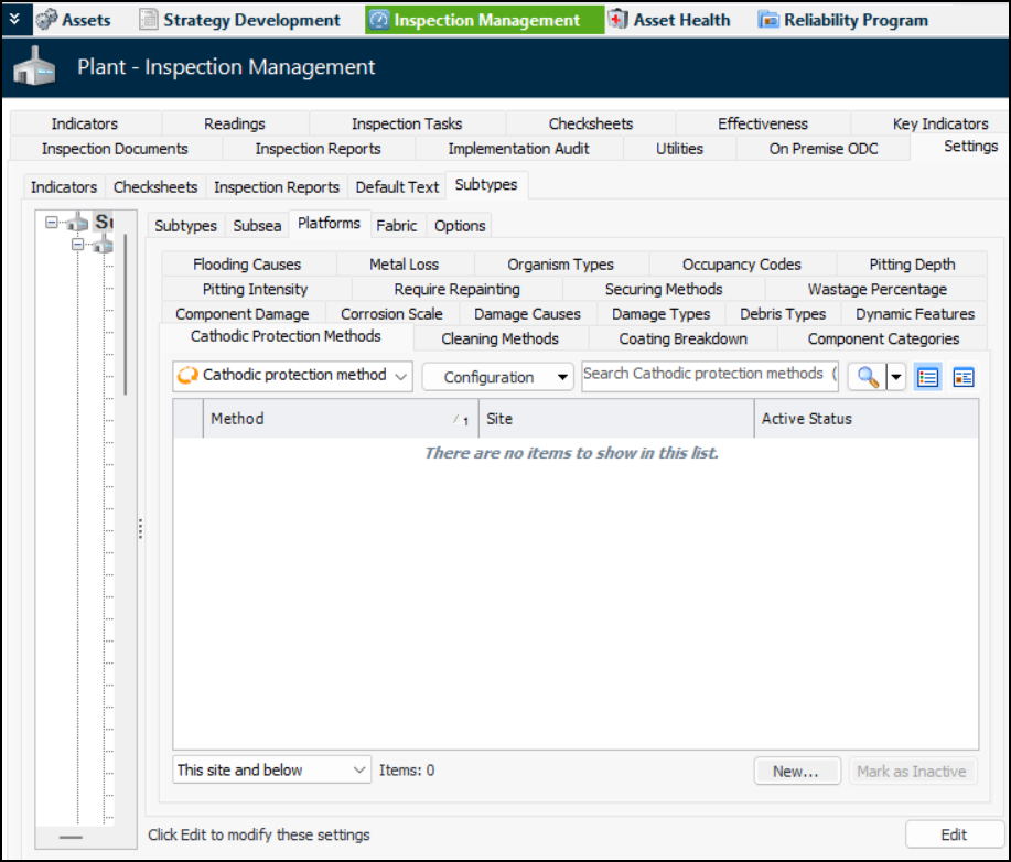 You can define planner groups in Reliability Program settings when AWEIS is active for the site. In the Site window, select the Reliability Program view and the